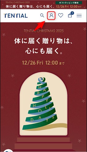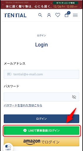 TENTIAL公式サイトの「ログイン」ボタンをタップする。