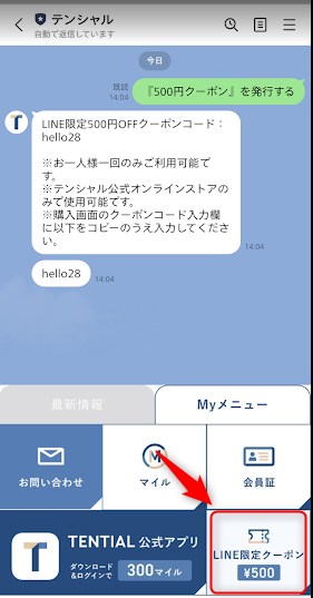 トーク画面右下「LINE限定クーポン」をタップする。