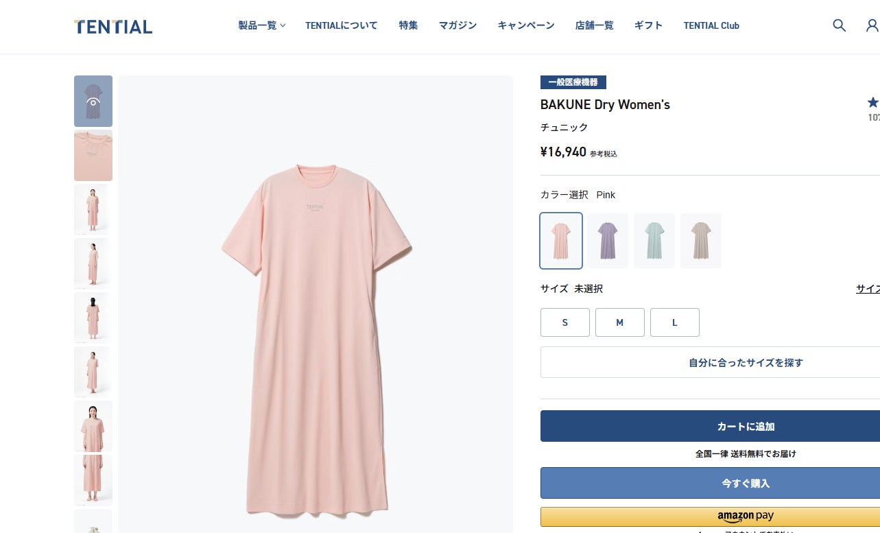 TENTIALのBAKUNE Dry Woman’s チュニックは、ゆったりとしたシルエットが特徴のレディース向けリカバリーウェアです。
