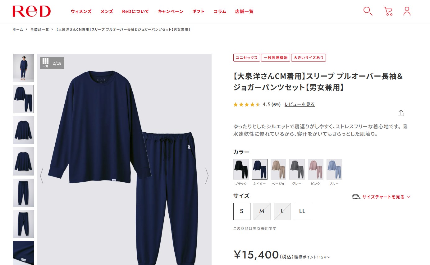 ReD「スリープ プルオーバー長袖&ジョガーパンツ セット」は、血行促進を通じて疲労回復などをサポートする一般医療機器のリカバリーウェア。