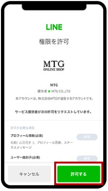 ② LINE画面に遷移後、「許可する」をタップしてアカウント連携を行います。