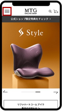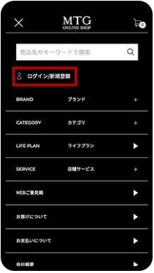 MTG ONLINESHOPトップのメニュー(赤枠部分)をタップ。