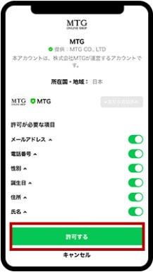 LINEの許可画面で「許可する」をタップし案内に沿って進めます。